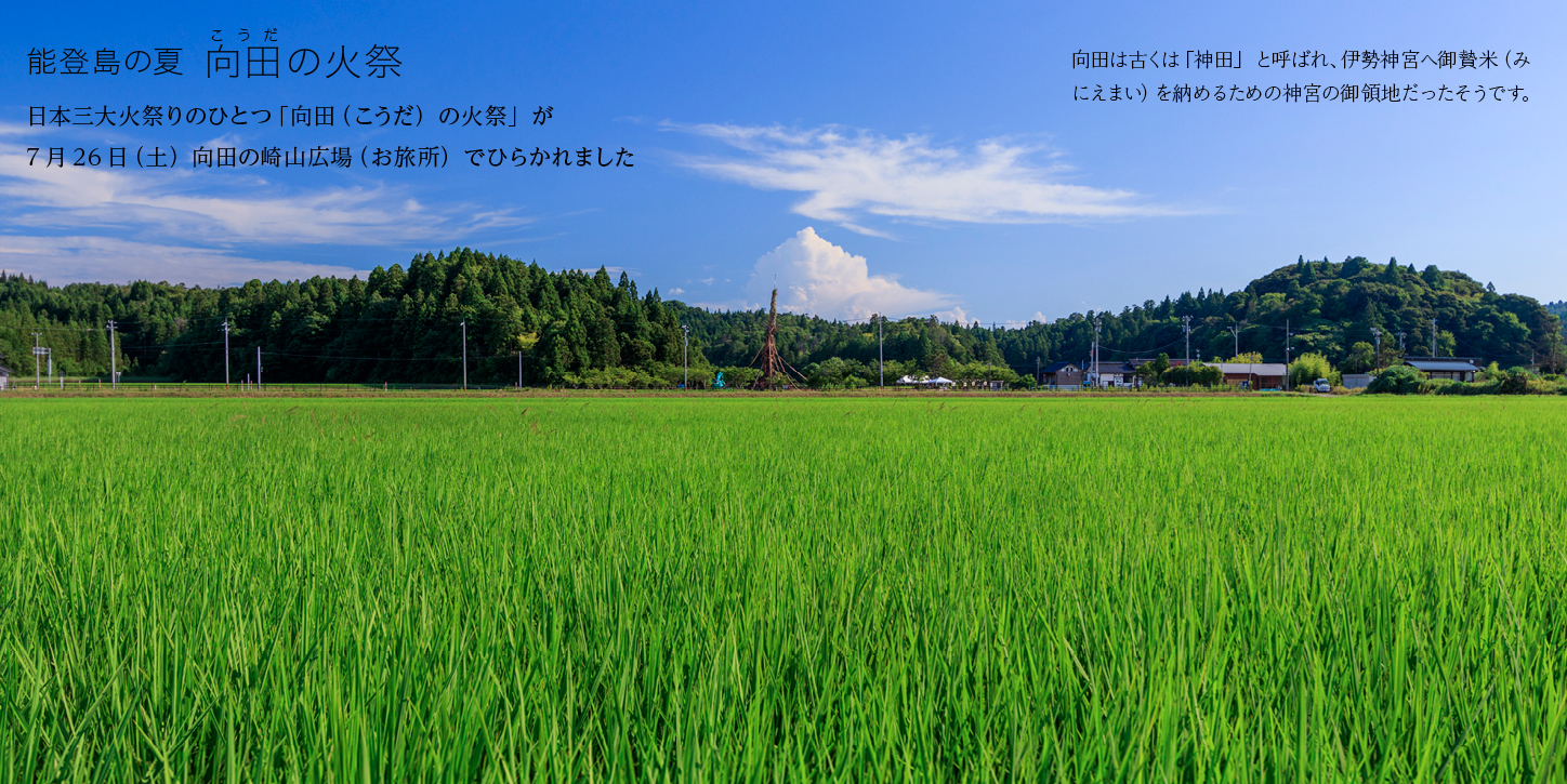 能登島の夏向田の火祭向田は古くは「神田」と呼ばれ、伊勢神宮へ御贄米(み
